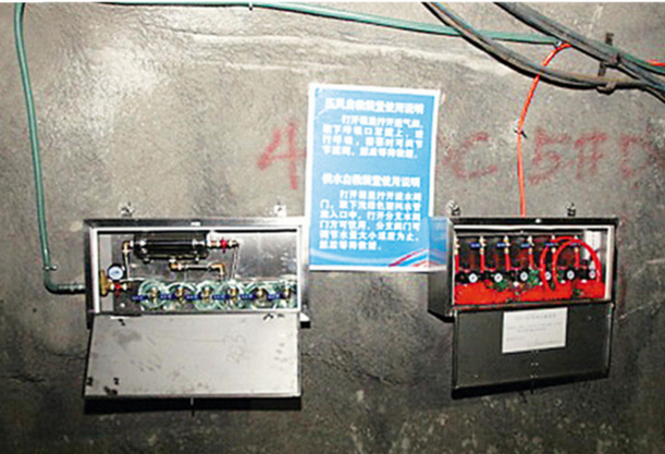 矿井压风自救装置是根据我国煤矿煤尘、 二氧化碳突出矿井的实际情况,结合呼吸救护现场的实际经验,经创新而开发研制的新型压风自救装置,该装置有恒定的送风量,有稳定的调压装置,另外还有积水排水的装置,所以是很受矿工欢迎的一种呼吸自救装置